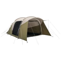 The tent weighs a total of 25.2 kg, has a pack size of 78 x 46 cm and takes 17 minutes to set up according to Robens. In addition, the inner tent is made of a breathable polycotton blend. However, the tent floor is made of 100% 75D polyester taffeta with a PU coating, so it has a hydrostatic head of 3,000 mm. Robens offers an optional polyethylene tent underlay with a hydrostatic head of 10,000 mm to protect the ground against moisture.